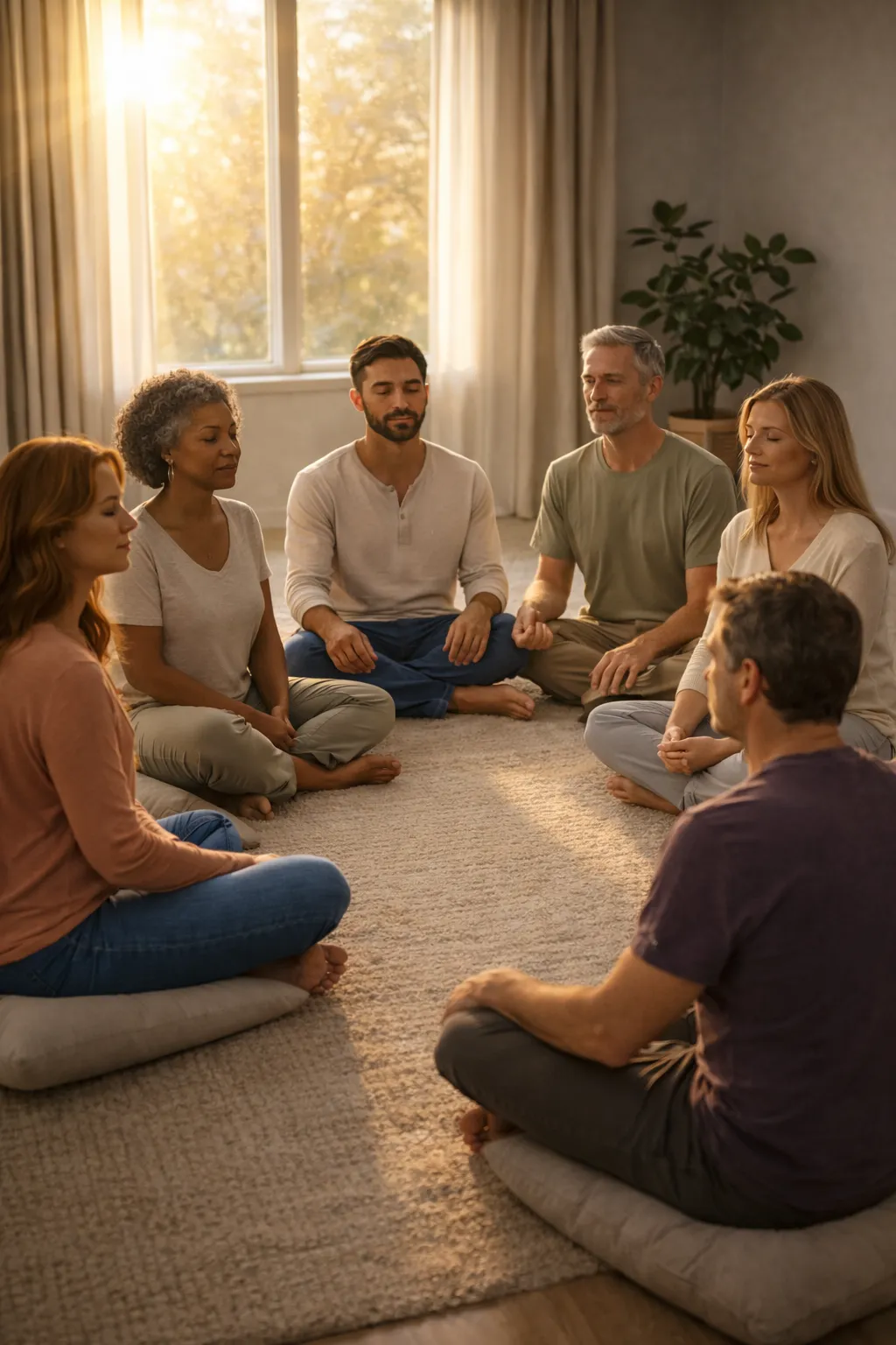 Practices such as resonance-based regulation, guided deep-rest exercises, and structured reflection and integration practices are introduced progressively and explored within a supportive group environment designed to foster safety, stability, and sustainable progress.